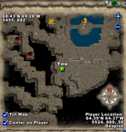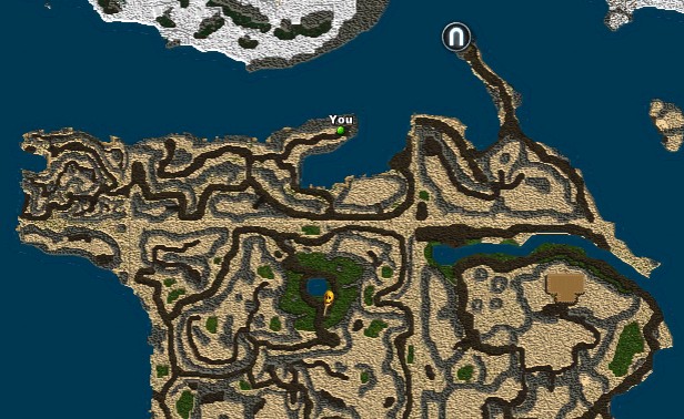 Unfortunate adventurers may find the ankh marked on the map to be of benefit to them, also in Felucca only, the two sparkles marked allow exit from the area.
