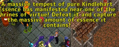 A Ritual performed by the Bardic Collegium at the Shrine of Compassion has unleashed a surge of uncontrolled flame across Sosaria. Many creatures have become Kindlehart Infused and glowing Kindlehart Shards now appear throughout the land. To restore balance, adventurers are asked to gather this scattered power and return it to the Bardic Collegium at the Britain Conservatory.