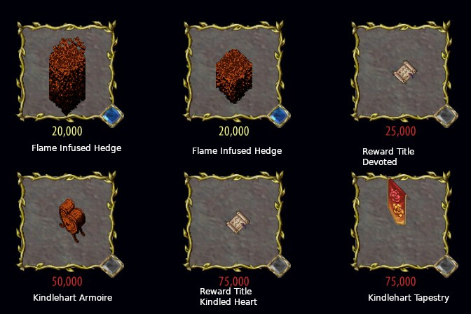 Every time Kindlehart Flame is collected at the Conservatory, the warmth level of Sosaria increases. When a critical level is reached, a Kindlehart Tempest will spawn in the world. This occurrence is subject to a 30 minute cool down. Defeat the Tempest for unique rewards! The collector’s color changes in the same sequence as that of the vessels as it builds towards critical.