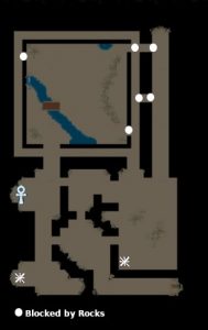 Extending from the entrance a long tunnel occupied by orcs, orc lords, orc scouts and orc choppers leads to the first of three large cave areas. A palisade across the opening restricts access while beyond a dire wolf joins the orcs roaming the area. Steps in the north west corner lead to the main living area where several rooms have been gouged from the rock.
